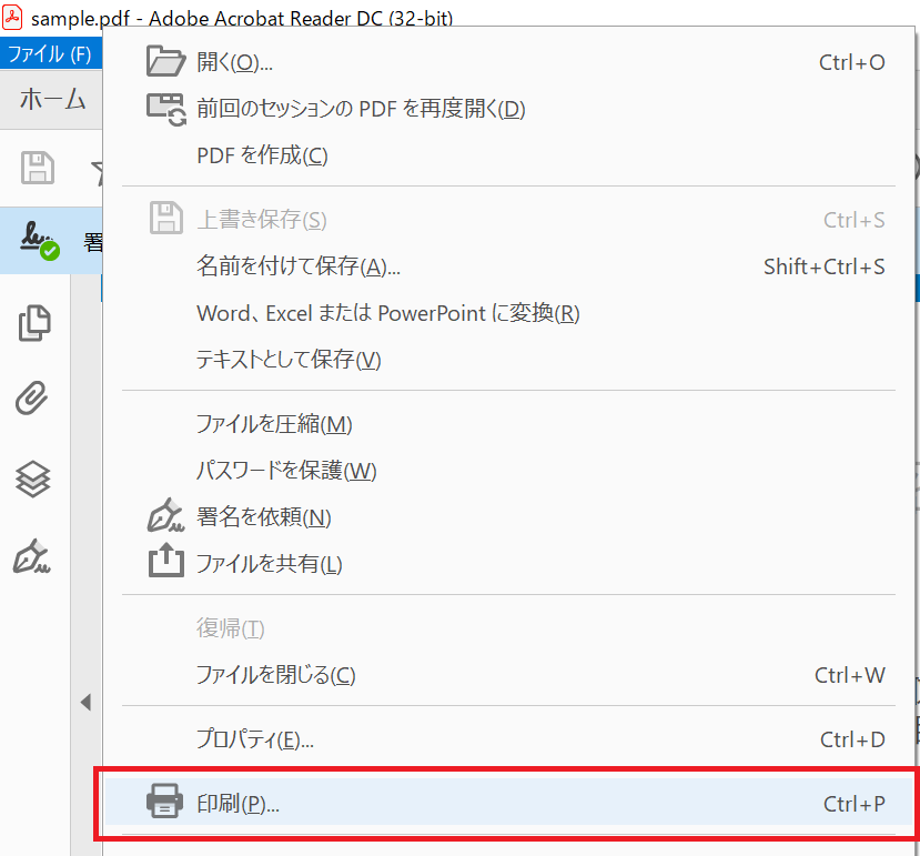 ※お使いのOSやAdobe acrobat Readerのバージョンによって、多少内容が異なる場合がございます。下記はWindows 10 Proのバージョン20H2、Adobe Acrobat Reade DCのバージョン2021.005.20060による内容です。